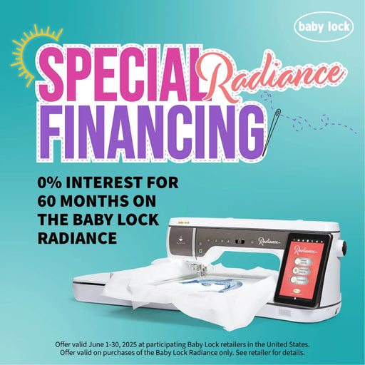 View full detailsBaby Lock Radiance (BLRA) Sewing, Quilting & Embroidery Machine The Baby Lock Radiance is a premium sewing, quilting, and embroidery machin...