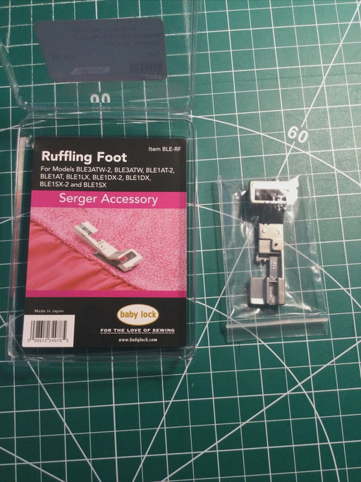View full detailsBaby Lock Ruffling Foot – BLA-RF The Baby Lock Ruffling Foot (BLA-RF) makes it easy to create beautiful pleats and ruffles for garments, home déco...