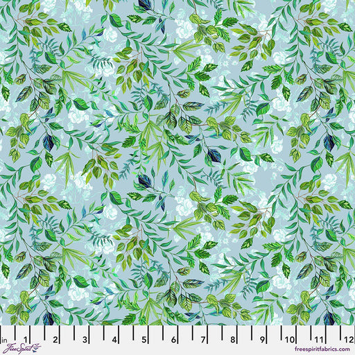 View full detailsMoonlit Canopy on Seaglass fabric – PWSB012.SEAGLASS A breezy canopy of leafy branches in layered greens over a soft seaglass background, creating...