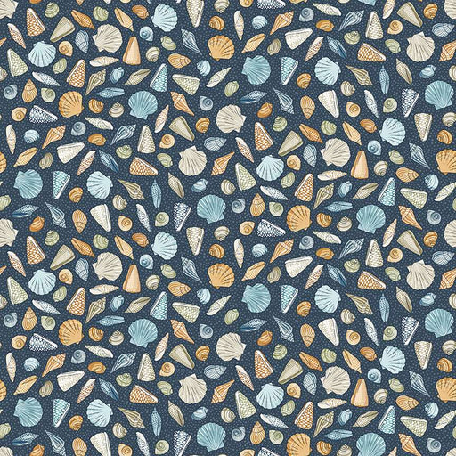 High Tide - Dark Blue Beachcomber Fabric - MU-079-B8 Embrace the beauty of the shoreline with the Dark Blue Beachcomber fabric from Makower UK's Hi...