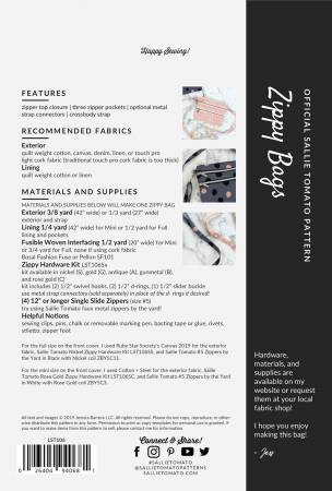 View full detailsZippy Crossbody Bags Pattern by Sallie Tomato - #LST106 Sew pretty and practical accessories with the Zippy Crossbody Bags Pattern by Sallie Tomat...
