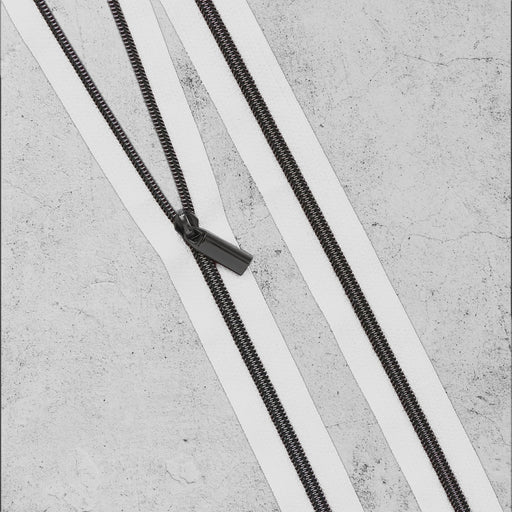 View full detailsWhite #5 Nylon Gunmetal Coil Zippers: 3 Yards with 9 Pulls by Sallie Tomato - #ZBY5C5 Create bold and stylish designs with the White #5 Nylon Gunm...