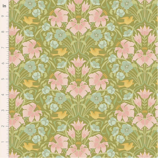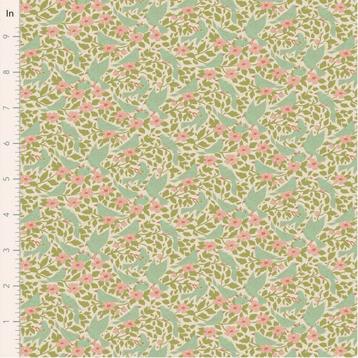 View full detailsTilda Songbird Ava in Green fabric – TIL100650 Stylized birds woven among florals in muted green tones bring a playful yet refined charm to this p...