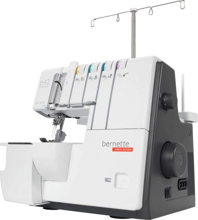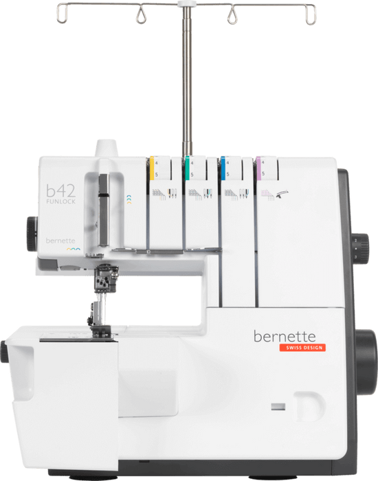 The bernette 42 FUNLOCK is a low-cost coverstitch machine ideal for achieving professional-quality hems, edges, and cuffs. With its 4-thread and 3-needle configuration, this machine offers three different coverstitches (2.8 mm and 5.6 mm) and a chain stitch. It's perfect for stretchy and thin knitted fabrics, providing excellent stitch results every time. Equipped with a bright LED light for optimal visibility and color-coded threading paths for easy threading, the bernette 42 FUNLOCK ensures a seamless sewing experience for all your projects.