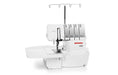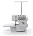 Comfort serging with FHS knee-lift, exact speed control up to 1,500 spm, Micro Thread Control (mtc), and a well-lit, spacious workspace.
