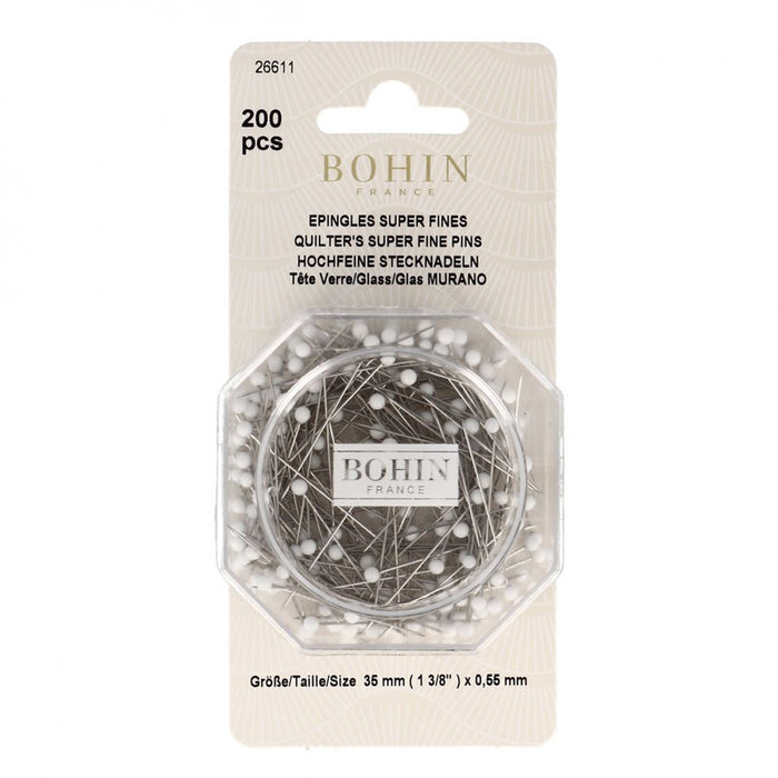 Bohin Glass Head Pin White Size 28 - 1 3/8in 200ct