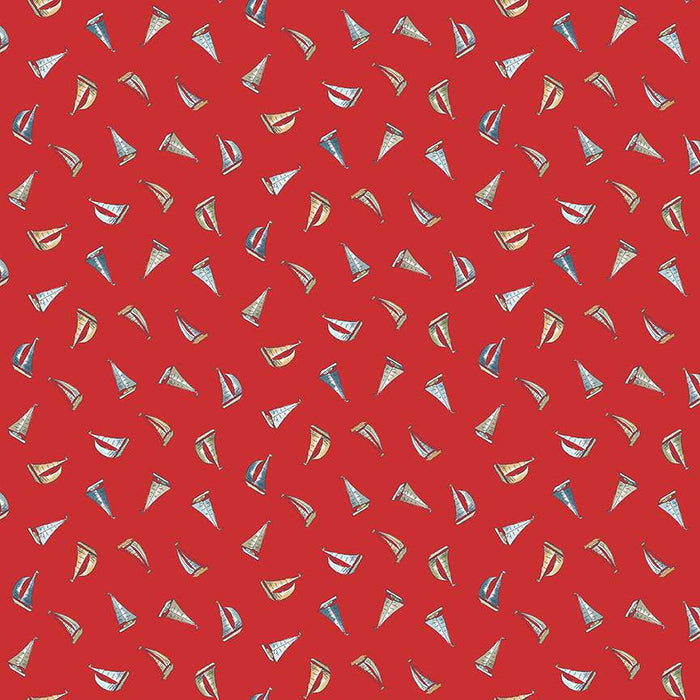 Sail into your next project with the Red Sail Away fabric from Makower UK's High Tide collection. Featuring playful sailboats on a vibrant red background, this fabric is perfect for quilting, bags, and seaside-themed home decor.