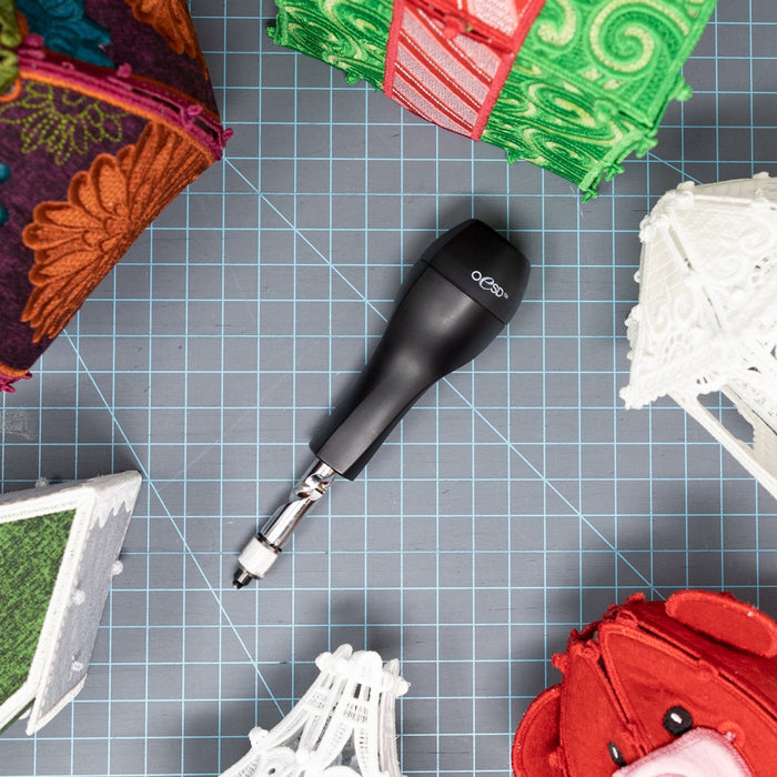 Effortlessly create holes of the perfect size in your machine embroidery projects with OESD's Perfect Punch. This handy tool features three interchangeable tips (2mm, 3mm, and 4mm) stored conveniently within the handle.
