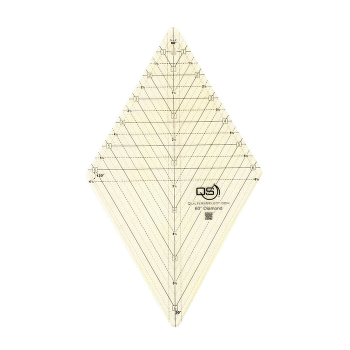 Transform your quilting projects with the Quilters Select 60 Degree Diamond Ruler! Designed for precision and ease, this ruler helps you create flawless 60-degree diamond-based shapes, including diamonds, triangles, parallelograms, and trapezoids.